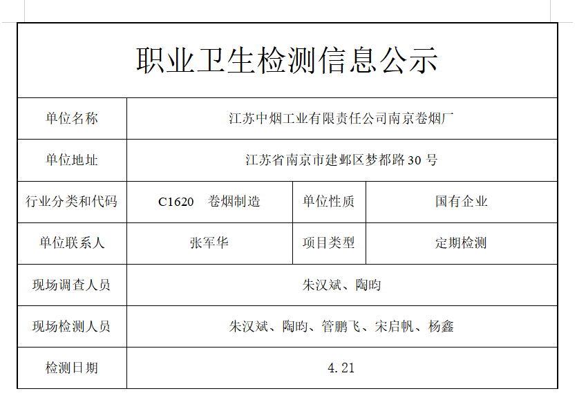 公示信息分类:职业卫生检测2023