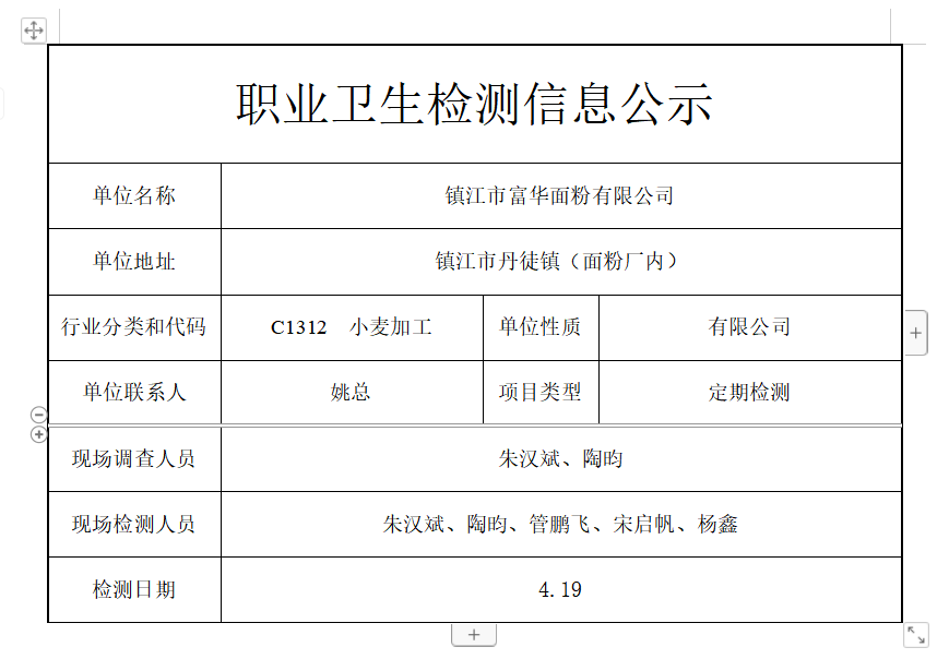公示信息分类:职业卫生检测2023