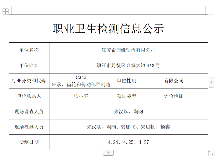公示信息分类:职业卫生检测2023