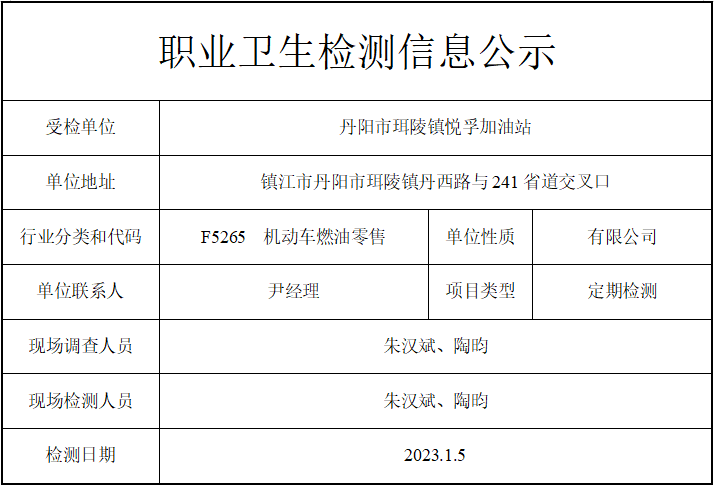公示信息分类:职业卫生检测2023