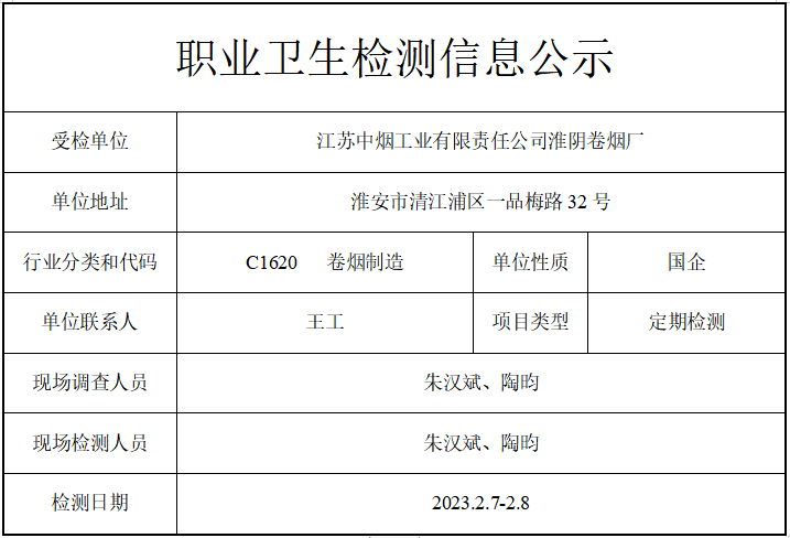 公示信息分类:职业卫生检测2023