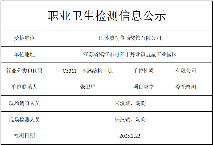 公示信息分类:职业卫生检测2023