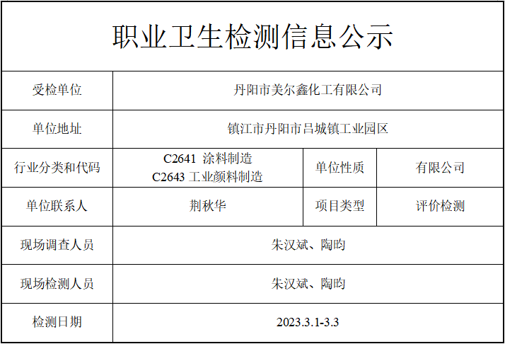 公示信息分类:职业卫生检测2023