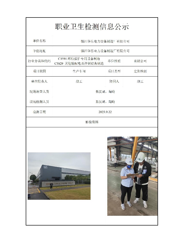 公示信息分类:职业卫生检测2023