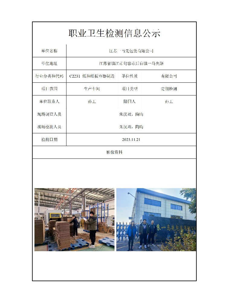 公示信息分类:职业卫生检测2023