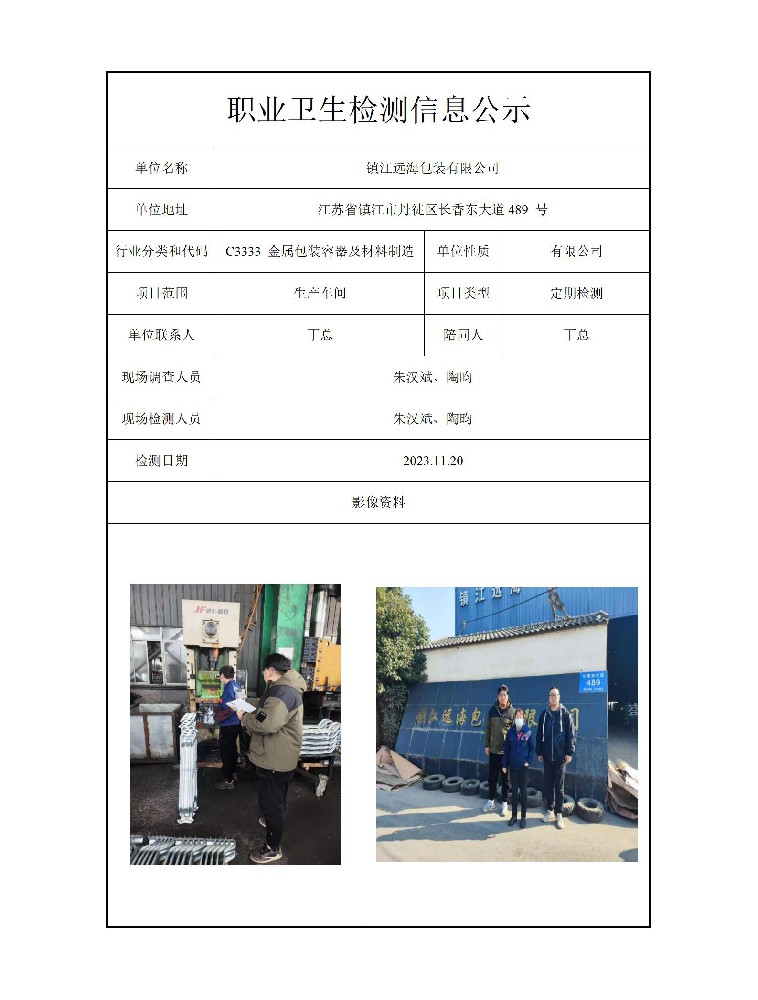 公示信息分类:职业卫生检测2023