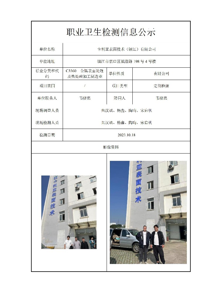 公示信息分类:职业卫生检测2023