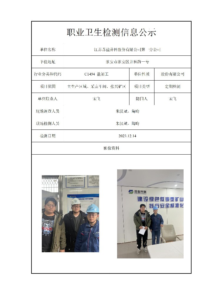公示信息分类:职业卫生检测2023