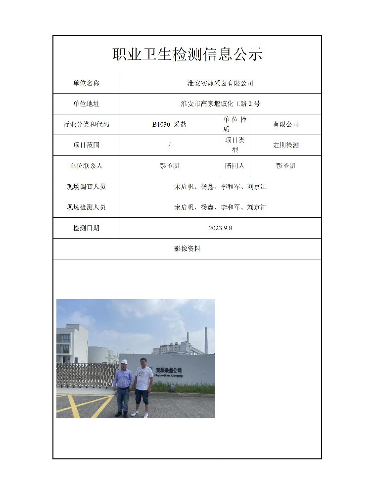 公示信息分类:职业卫生检测2023