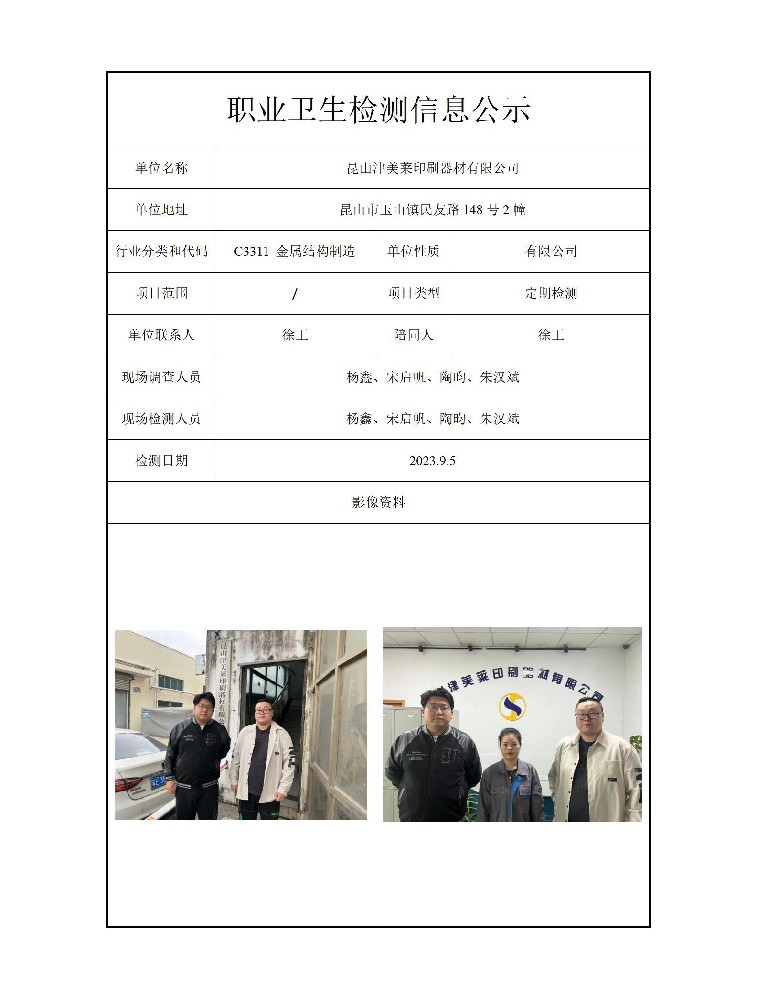 公示信息分类:职业卫生检测2023