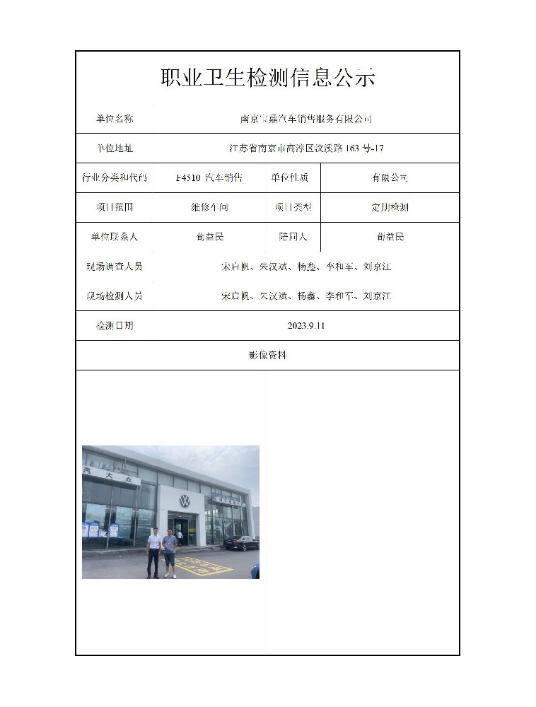 公示信息分类:职业卫生检测2023
