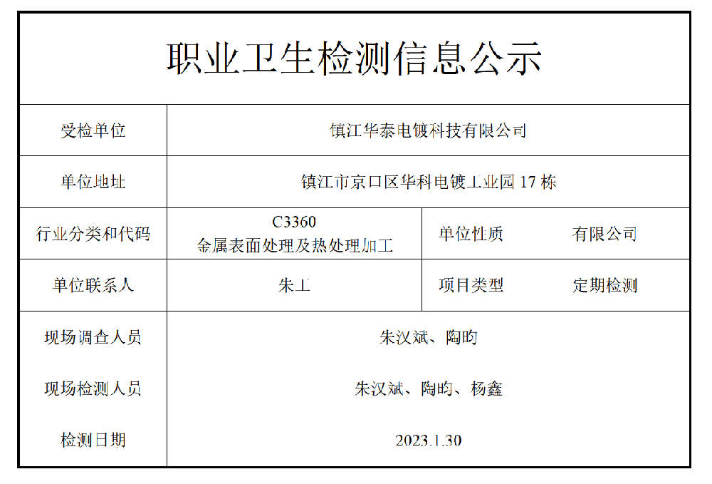 公示信息分类:职业卫生检测2023