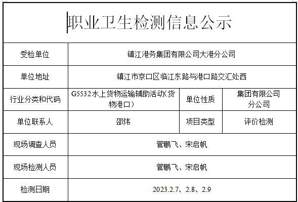 公示信息分类:职业卫生检测2023