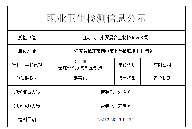 江苏天工索罗曼合金材料有限公司