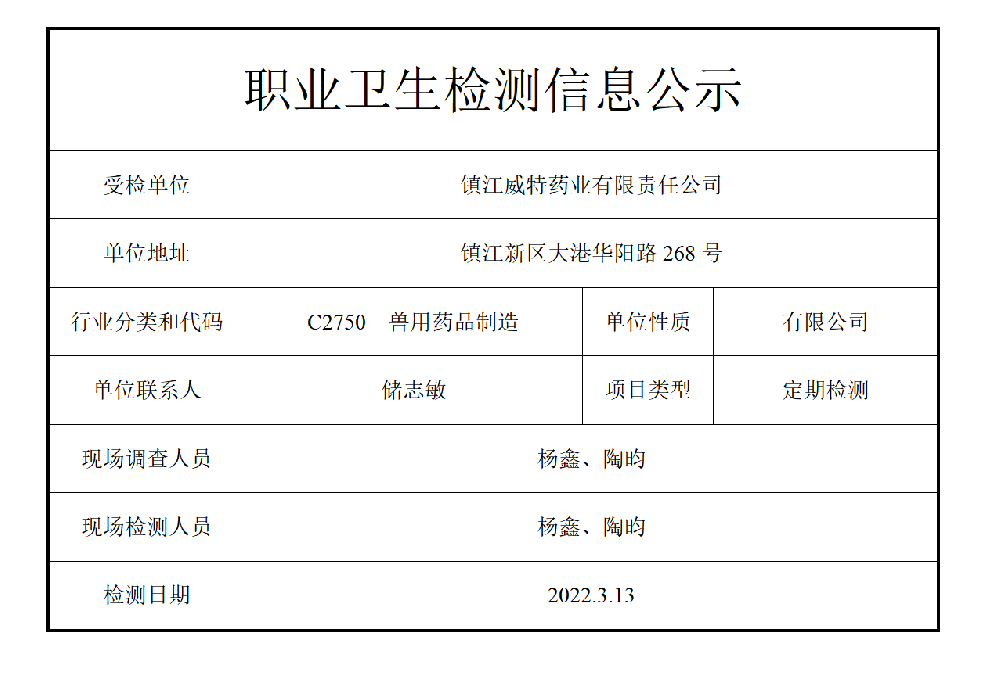 公示信息分类:职业卫生检测2023