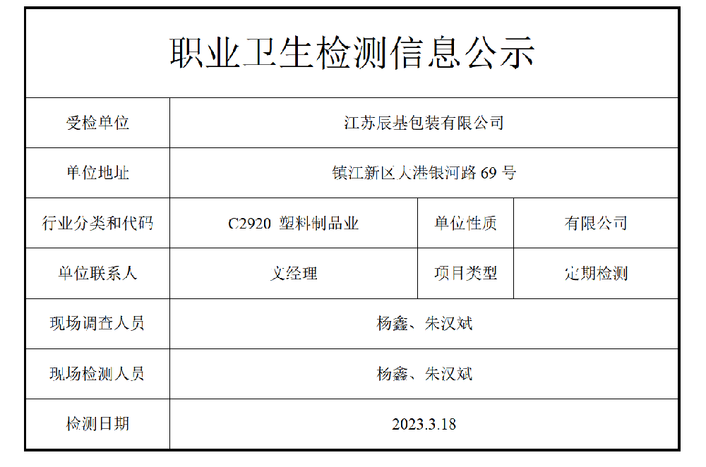 公示信息分类:职业卫生检测2023