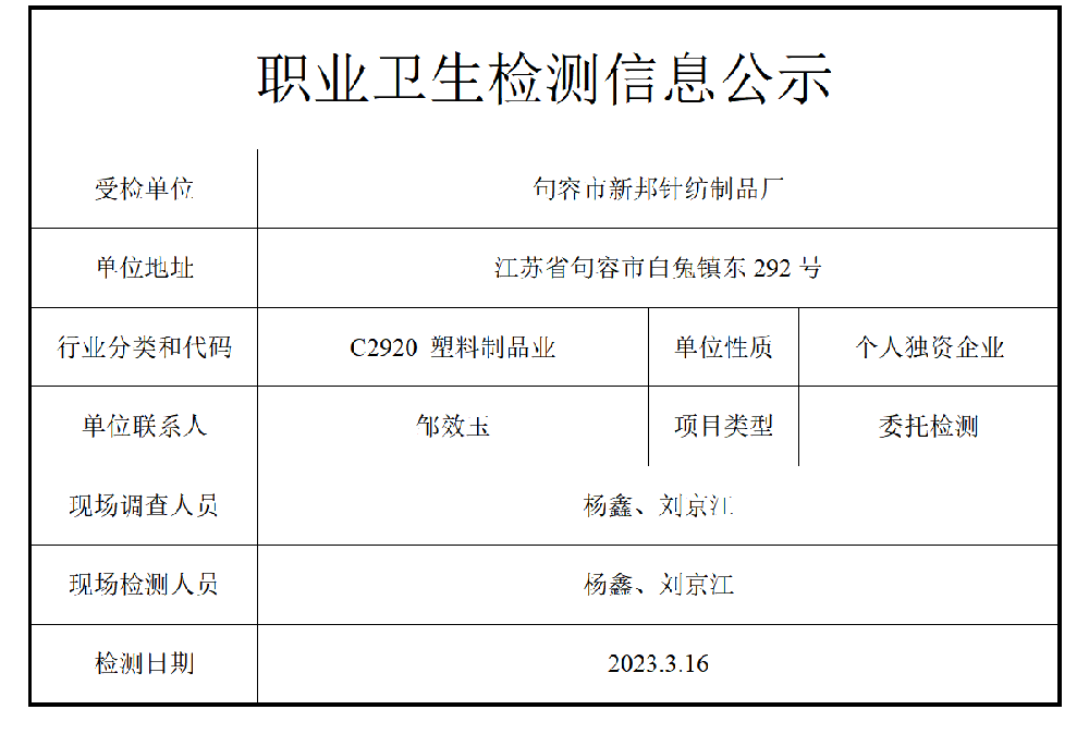 公示信息分类:职业卫生检测2023