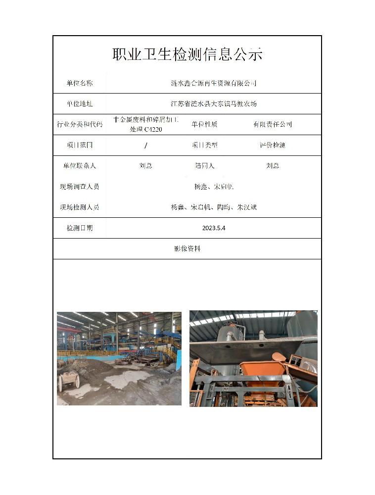公示信息分类:职业卫生检测2023