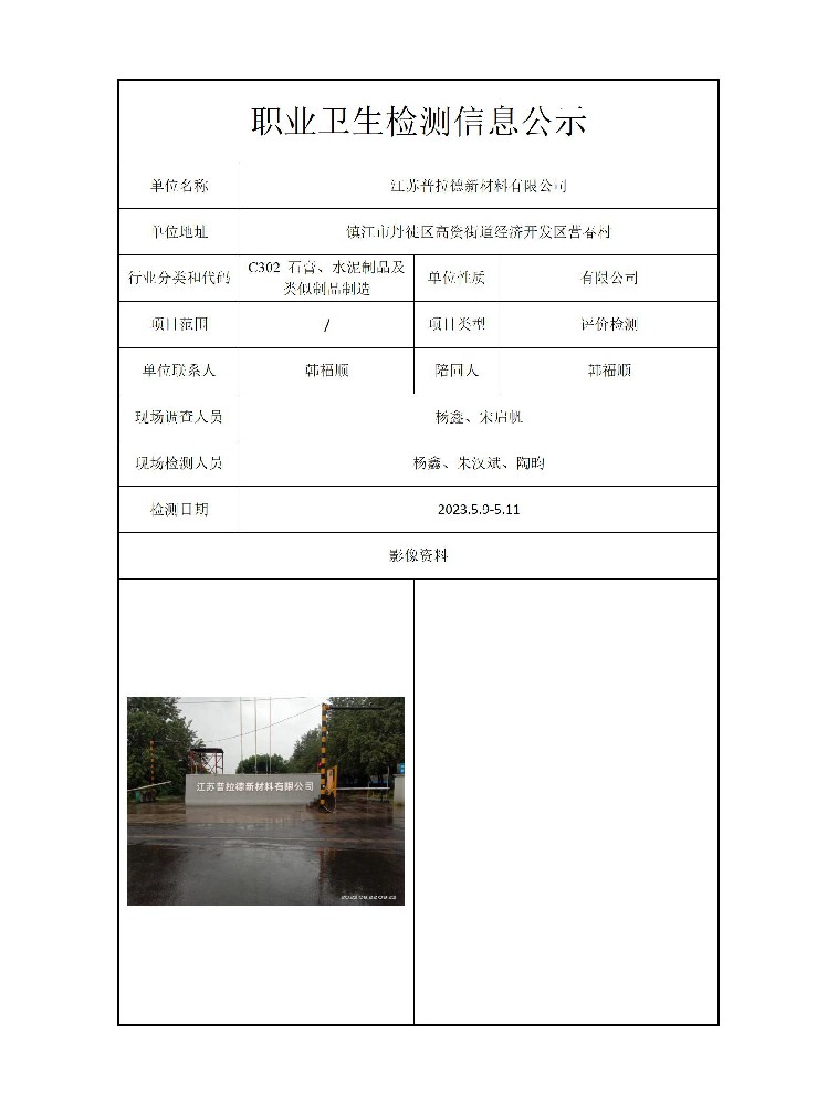 公示信息分类:职业卫生检测2023