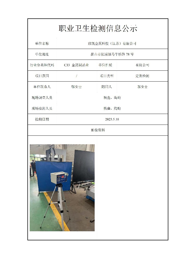 公示信息分类:职业卫生检测2023