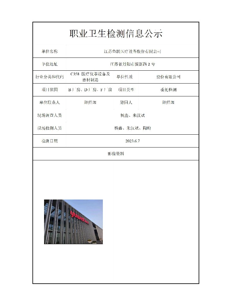 公示信息分类:职业卫生检测2023
