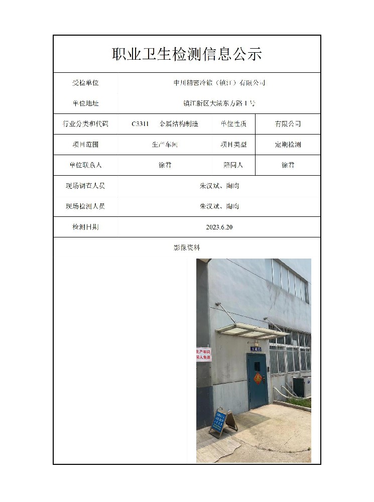 公示信息分类:职业卫生检测2023