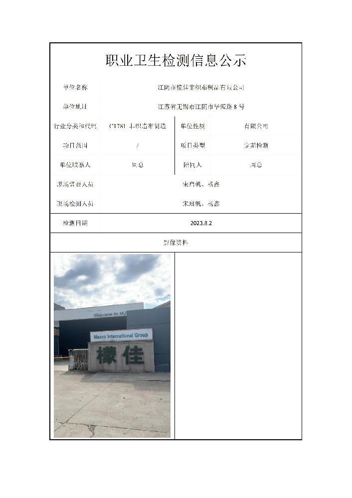 公示信息分类:职业卫生检测2023